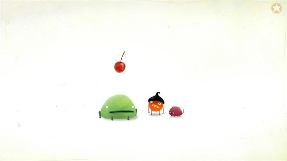 在追逐的过程中,一颗樱桃被一只黄色的怪物抢走,并且被它吞进了肚子里。
