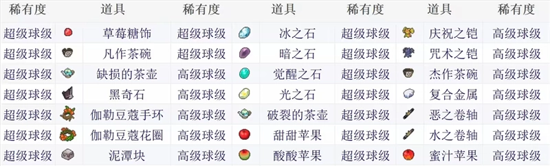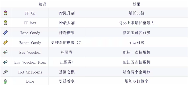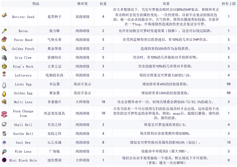 宝可梦肉鸽全道具详解及图鉴