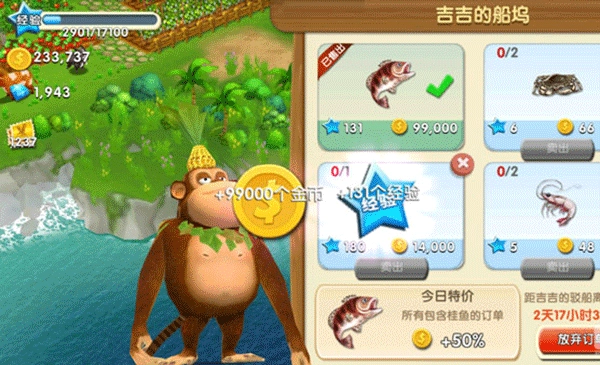 6、吉吉船坞里的订单大多和海产相关,因此这些订单得等玩家到了游戏后期才能完成!