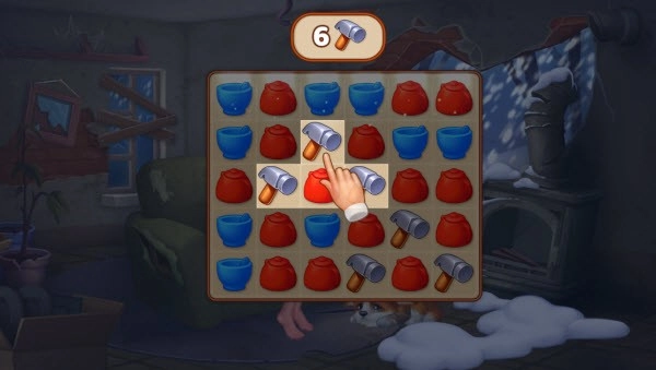 3、采用消消乐的游戏方式获取装修所需的费用,只要把三个相同的图标连接起来就能完成消除。