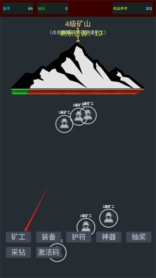 2、点击矿工,接着点击招募矿工,这样就能获取更多收获。