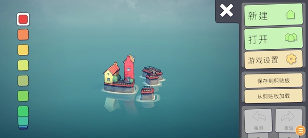 2、点击右上角齿轮形状的按钮进入设置界面,选择新建选项后,玩家就能在水面区域搭建房屋。