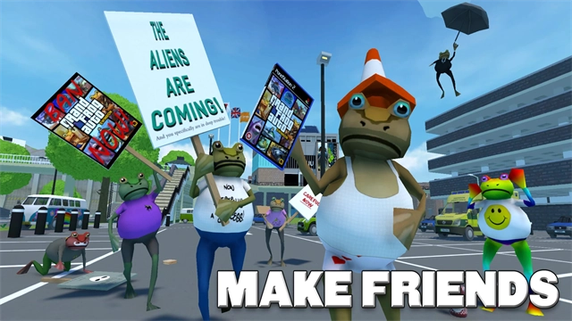 神奇青蛙正版是一款充满欢乐的沙盒游戏,玩家将化身一只既神奇又搞怪的青蛙,在冒险途中会遭遇各类怪物的阻碍,需要不断战胜它们。游戏拥有逼真的物理效果,玩家能与场景内的各种物体互动,体验趣味十足的青蛙冒险玩法。游戏的美术风格十分独特,玩家将在一个奇幻世界里开启旅程,不仅可以尝试开车、划船、当人体炮弹等多样活动,还能探索斯文登市中心、僵尸青蛙盘踞的下水道、太空项目地下实验室乃至月球空间站等不同环境。此外,游戏还支持多人联机,玩家能和好友组队互动,搭配可自由选择的道具,随心所欲地发挥创意,玩法充满乐趣,感兴趣的玩家快来体验吧!