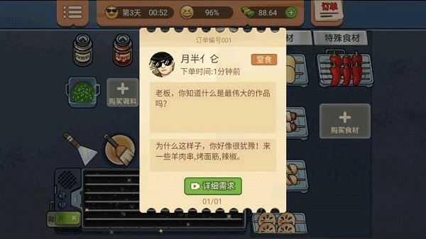 1、进入游戏。你可以看到不同顾客的食材制作需求