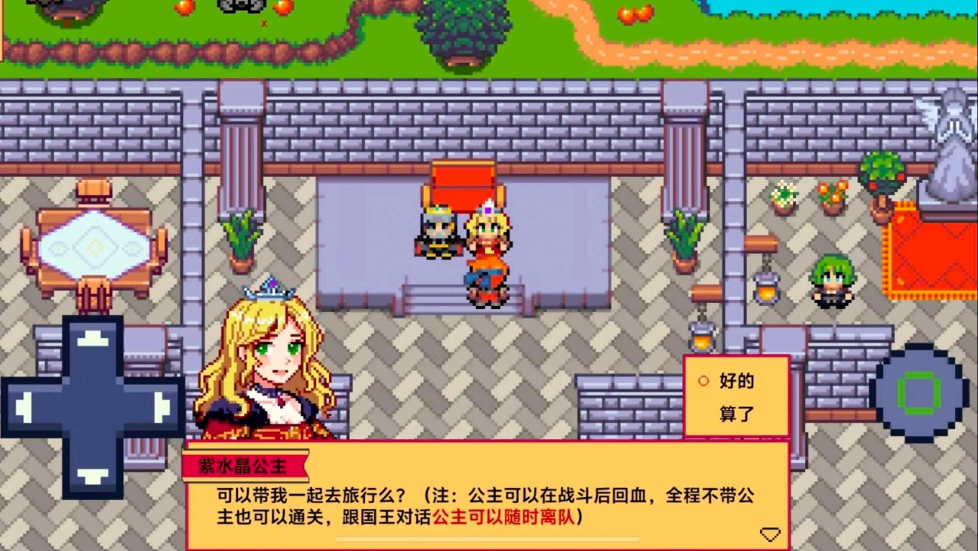 2、进入游戏后,先与公主和国王对话,了解故事背景,并完成初始剧情。