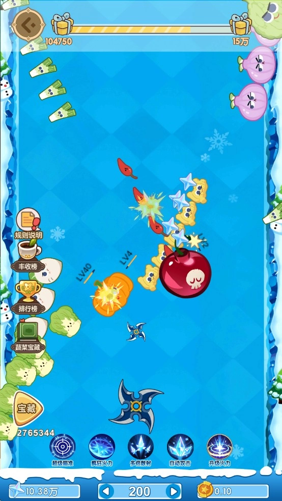 2、升级炮台的等级,消灭游戏中更加强大蔬果蔬菜