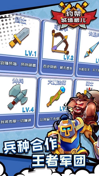 约架城墙根儿安卓版是一款充满刺激感的策略对战游戏。它采用卡通Q版的美术风格,将优质的画面表现与创新的游戏玩法相结合,为玩家带来了全新的放置战斗体验。在游戏里,玩家将化身一方领地的领导者,需要持续招募各类兵种来组建专属军团,并率领军团参与战斗。值得注意的是,玩家需凭借对游戏的深入理解,巧妙且合理地搭配阵容,这样才能更轻松地赢得胜利。