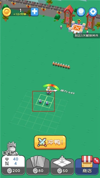 在这款游戏里,你能自由组建专属的小部队,根据自己的策略挑选兵种、规划阵型来对付不同对手。阵容安排好后,点击出击,他们就会自动与敌方军队展开战斗。
