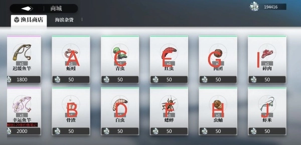 商店中有售卖10种不同的鱼饵,它们的种类决定了可能上钩的鱼的种类: