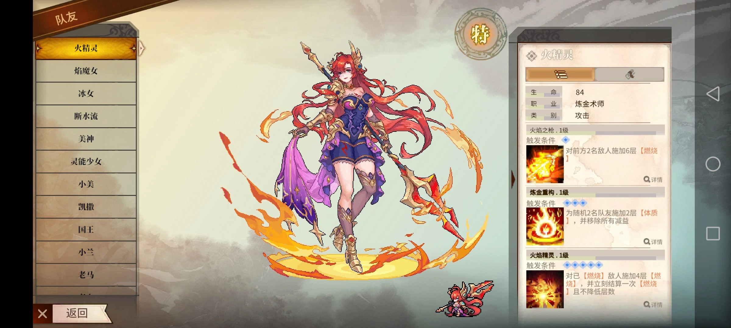 火精灵,当累积燃烧伤害达到2000时可解锁成就,获取途径为招募。