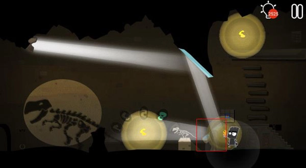 第十五步:调整下图红框位置的镜片,使其在墙上投射出恐龙遗骸的图像。