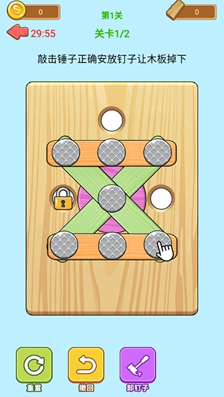 解压小锤锤是一款备受玩家青睐的益智类游戏,它将物理学原理与别具一格的操作方式巧妙融合,让玩家收获趣味十足且充满挑战的游戏体验。游戏里,玩家得用心规划木板上的钉子排列,借助改变模块的受力情况,让它们在重力影响下准确掉落到底部。每一个关卡都是一场全新的智力考验,玩家需要反复尝试、调整策略,才能顺利通关呢。