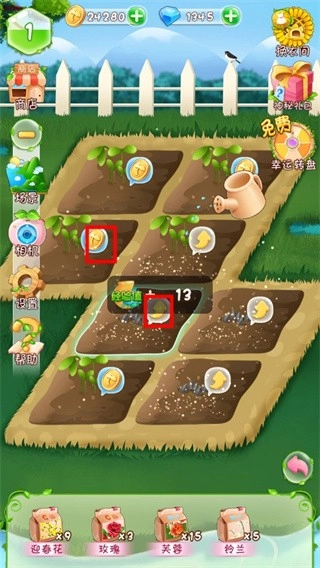 玩家能够借助种植花卉、观看广告、完成任务等途径获取金币或钻石,以此来购买更具梦幻感的场景。