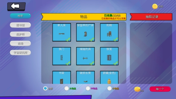 地牢、图书馆、商场、庇护所、宇宙研究所。在变异躲猫猫里,地牢是最大的场景,能够容纳40人一同游玩。