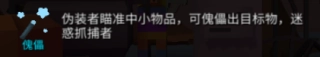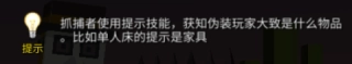伪装者能够克隆并傀儡场景内的物品,以此实现隐匿与误导的效果,还可以在拐角处利用分身来迷惑抓捕者;而伪装库能够增加可克隆的物品种类。抓捕者则可以借助金身获得短暂的无敌状态,从而对密集区域进行疯狂抓捕;当抓捕陷入无头绪的困境时,还能使用提示技能,来了解伪装者大致对应的物品类别——例如胡萝卜的提示会显示为“食材”,单人床的提示则会显示为“家具”。
