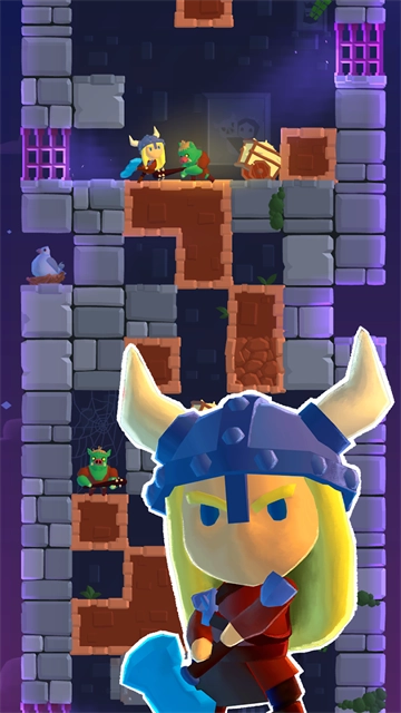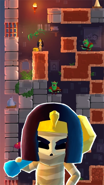 若角色被塔楼里的怪物杀死,闯关便宣告失败;而通过向下冲刺或挥动战锤的方式,就能击败这些怪物。