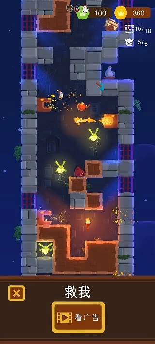 5、攻击能够消灭塔楼里的全部怪物,还可以毁坏喷火石像、尖刺,并且能推动矿车。