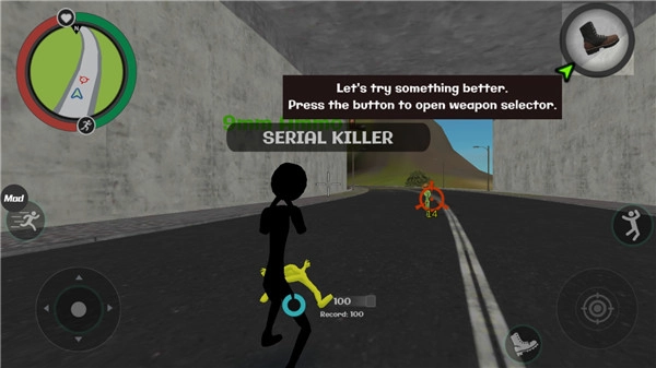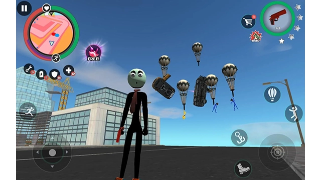 左侧控制移动与加速,右侧对应绳索和攻击(含跳跃功能),跳跃键独立设置;屏幕右上侧的武器切换界面、血量及经验值均实时更新,状态信息一目了然。玩家可自由选择玩法,与其他帮派成员展开交火——击杀敌人能获取经验,连续击杀会累积星级,届时警察与周边角色将对你重点“关照”,发起猛烈攻势。而如何在激战中存活、并成功消灭对手,正是你需要完成的核心任务。