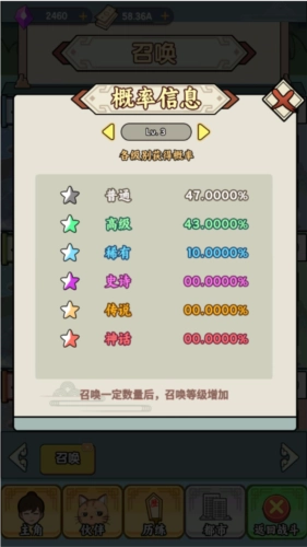 接下来,我们可以根据自己的喜好选择一个卡池继续投入,个人建议优先考虑装备池。从抽卡系统的机制来看,每个卡池会独立计算抽卡等级,等级提升后获得高阶物品的概率也会相应提高。在游戏前期,如果运气不错能抽到更高阶的装备、技能或同伴,对我们战力的提升效果会非常显著,这能帮助我们在前期快速推进关卡。而关卡进度越高,挂机时获取的钞票收益也就越丰厚。