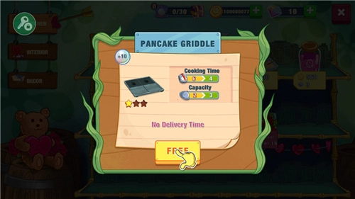 2、烹饪食物时需把控好时间,等进度条(绿条)填满后就得点击收取,否则食物会烤焦。玩家要依据客人的需求提示,点击对应的果酱以及左侧的咖啡(咖啡有冷却限制);随着客人数量逐渐增加,玩家还得给自身的道具进行升级。