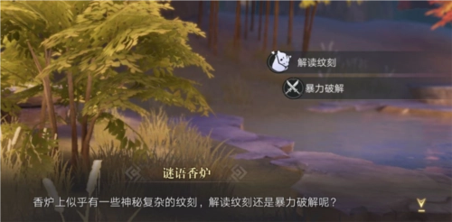 在寻宝过程中,难免不了发生一些意外,挖着挖着挖出一个大粽子也是平常之事,有时也会挖出谜语香炉,玩家可以选择是谜题还是强行。因为降低评分的时间限制,如果能快速解开谜题的话,速度可比暴力快得多哦~