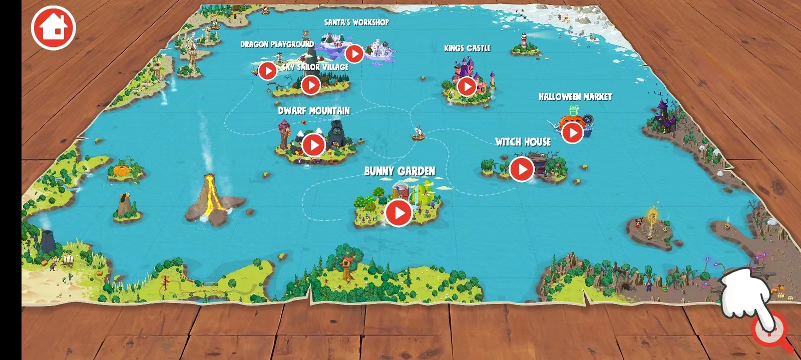 进入后会显示一张大地图,地图上的每个区域玩家都能前往探索;点击右下角的按钮可放大地图。