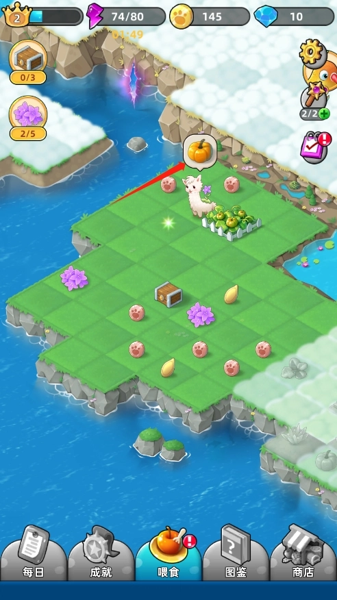 5、点击下图的南瓜,可以对动物进行喂食;