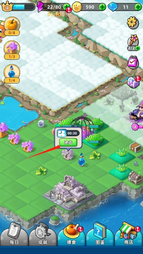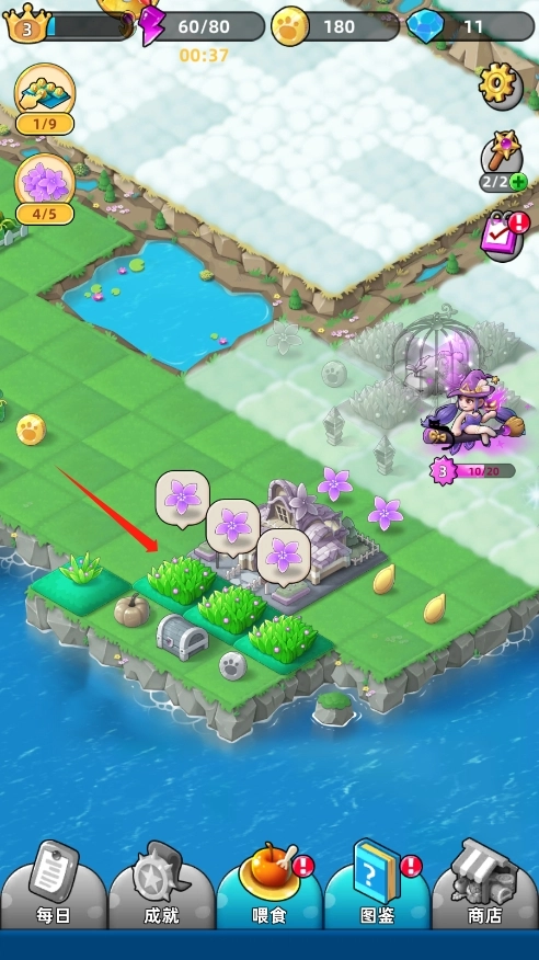 2、持续进行合并操作,能够发现新的动物、新的区域以及新的物品;点击魔法球还能对女巫发起攻击,成功击中女巫后就可以解锁新的区域。
