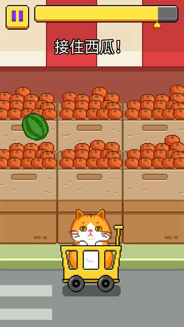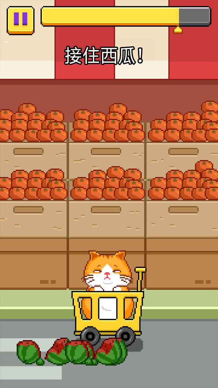 2、快来操控这只小猫咪驾驭购物车,把掉落的西瓜统统收集起来,并运送到各个不同的地点。