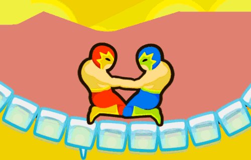 1、基友摔跤是很好玩一款小游戏,两个基友扭打在一起,通过不停的摁键来蹬腿,让对方头撞在地上或墙上你就获胜,可以和AI对战也可以和真正的基友同机对战。