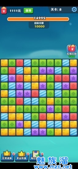 1、滑动屏幕将相同的方块全部消除,感受屏幕炸裂快感。