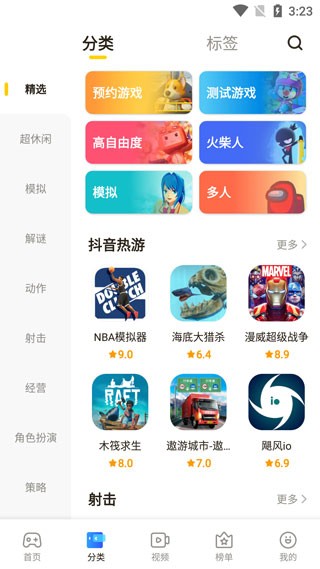 2、点击分类,你可以根据游戏类型找到自己想玩的游戏;