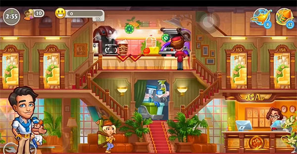 游戏以模拟经营玩法为核心,玩家需要利用合理的策略来解决酒店危机,玩法非常真实。