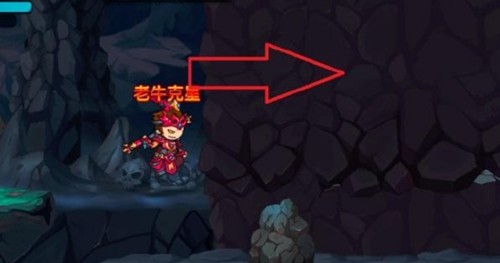 径直来到场景的最右侧,此时能够向上跳跃。成功跳上去后,向左行进,会看到一个箱子。从第一处隐藏地点继续往右走,在图示的位置会有一块石头(在图里我已将这块石头打掉了)。当石头掉落时,会砸毁一堵石墙,进而开启隐藏场景。