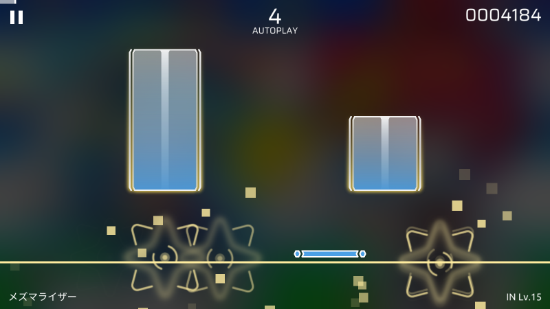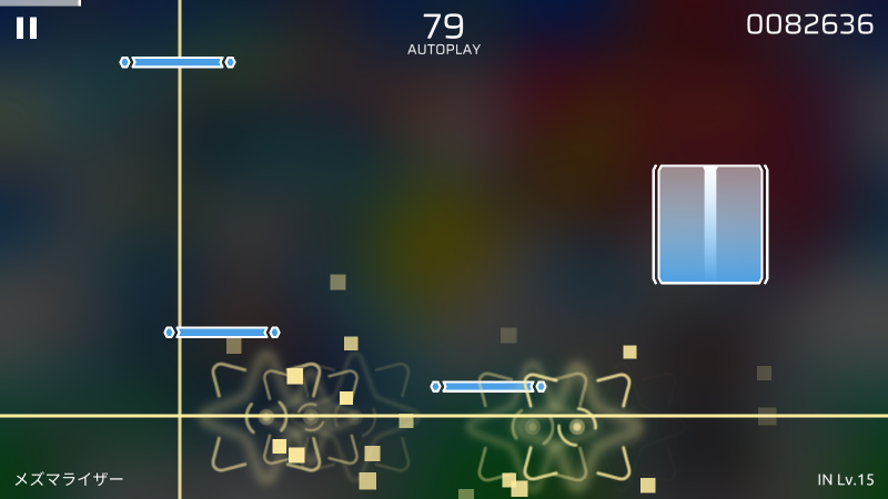 玩家需要根据音乐节奏,在音符与判定线重合时进行触控操作。操作方式包括点击、滑动、长按和拖拽。根据触控的精准度,会获得不同的判定,最终根据准确度计算得分和评价(从Φ(Phi)到C等)。