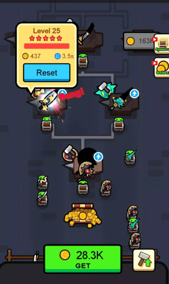 从一个小锻造台开始,运输和出售武器,并将金币装入藏宝箱。用黄金升级。等级越高,建造速度越快,价格也越高。开设新的生产线,运送并出售您的武器,并装满您的金箱!