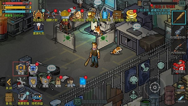 1、打开像素危城最新版,联盟是和其他小伙伴一起建设的玩法,等级达到要求后就可以在左下角进入联盟系统,
