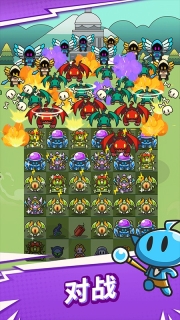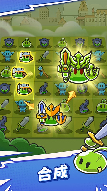 1. 采用三消形式的合成玩法,只需把相同的小怪物进行合成,就能持续提升英雄等级,获取更为强大的战斗力。