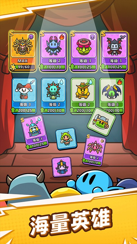 海量的英雄都会让您选择,玩家自由召唤各种强大英雄,组建队伍进行闯关。
