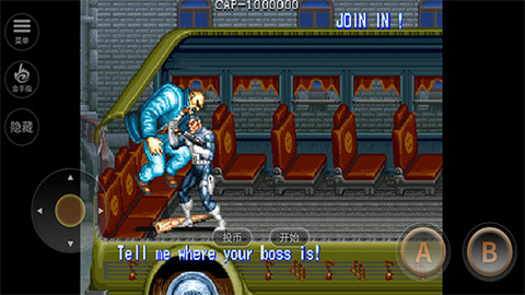 3、设置完成后,请注意左下角的移动键,A是拳,B是跳。了解这些之后,就可以点击投币开始游戏了。