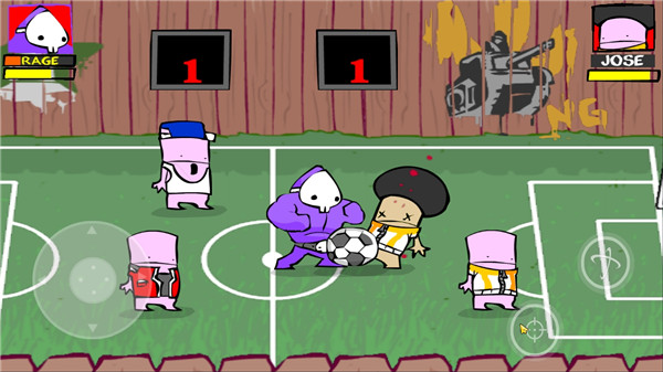 温馨提示:若能将球踢进球门,将会额外加分(分数显示在背景处)。当你控球时,小孩会来铲球。