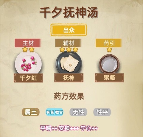 药引:粥凝、蜜草、柏仁实(若不加药引,宁心效果无法达到最佳程度)