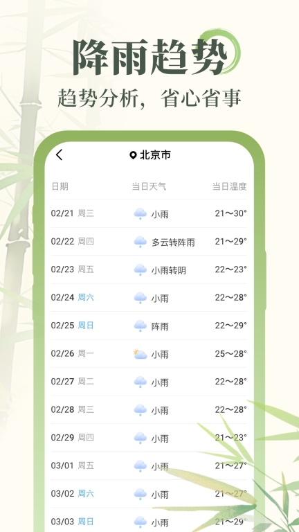 1. 具备40日天气预报功能,能提前知晓未来几周的天气状况,便于制定长期计划。