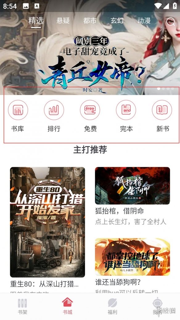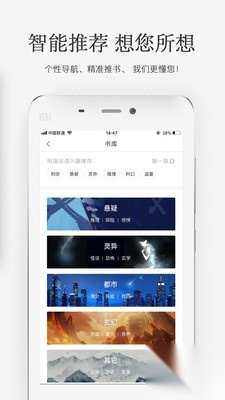 2、在书城浏览时,用户可以根据分类筛选主打推荐的小说。