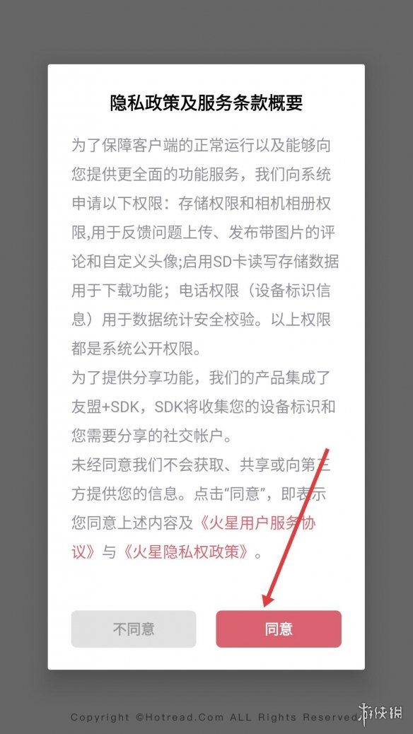1、当打开火星小说应用,首先要阅读并同意隐私政策以及服务条款,之后方可进入书城。