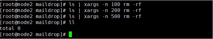 [root@node2 maildrop]# ls | xargs -n 500 rm -rf