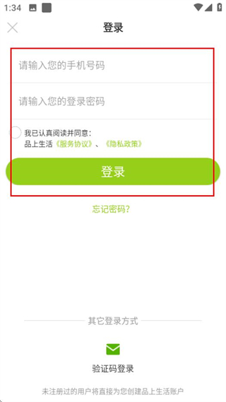 3、在密码登录页面,输入信息,勾选协议后点击登录,完成登录操作。