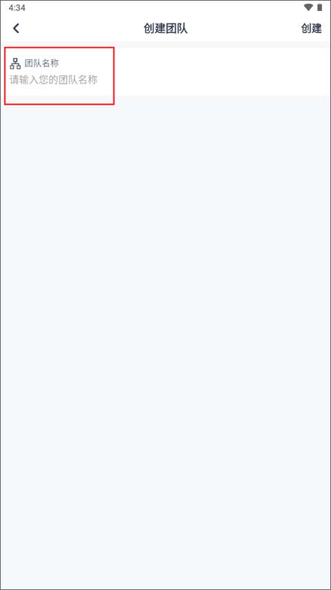2、给自己的团队取一个名称,取好后点击创建即可。