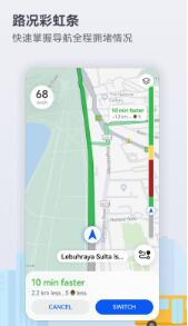 1.可以获得旅行过程中的实时交通信息,并通过输入目的地来规划最短路线。