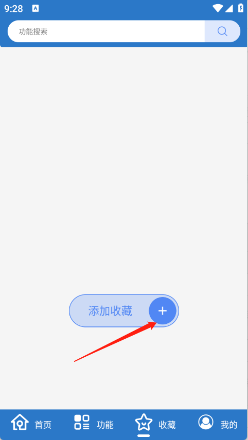 1、进入首页之后,点击“收藏”。,点击“+”。